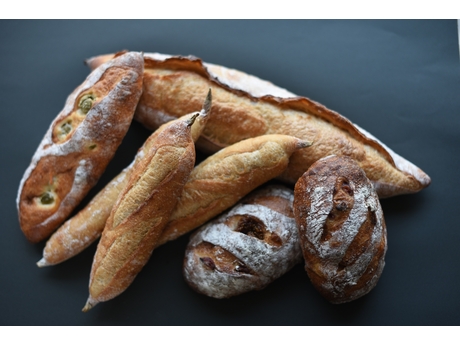○焼きたてパンの陳列 など